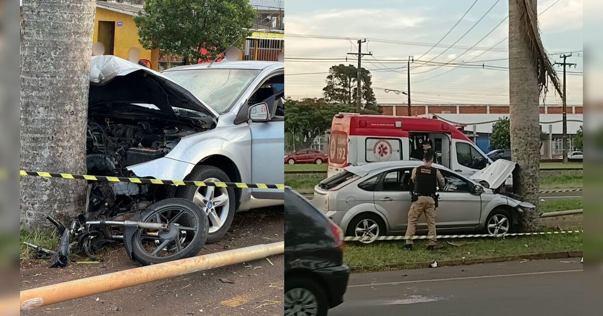 Um Ford Focus e uma motocicleta foram os veículos envolvidos na colisão.